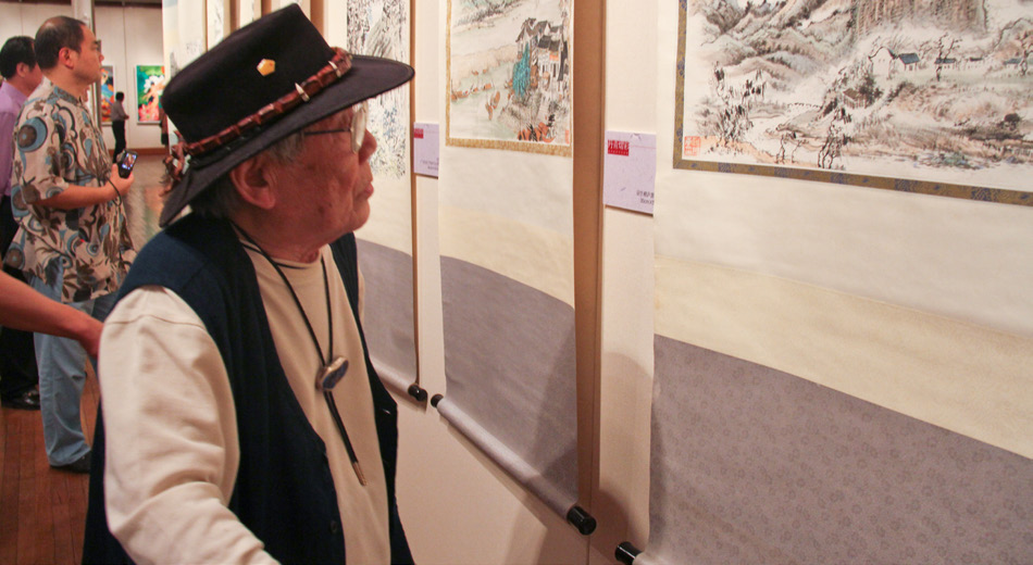 丹青熠彩画展开幕式上,协会名誉会长赵青热情洋溢的致辞